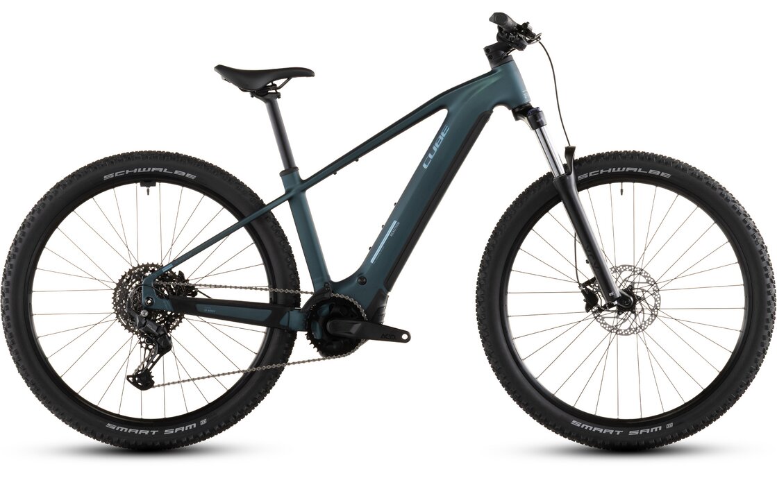 Das Cube Reaction Hybrid ONE 800 ist ein E-Bike, das mit einem Bosch Performance Line CX Smart Gen5 Mittelmotor ausgestattet ist. Cube ist eine etablierte Marke im Bereich sportlicher Fahrräder, die für technische Präzision und Qualität steht. Das Modell ist als E-Mountainbike konzipiert, was sich an der Ausstattung und der Kombination von Federgabel sowie grobstolligen Reifen zeigt.