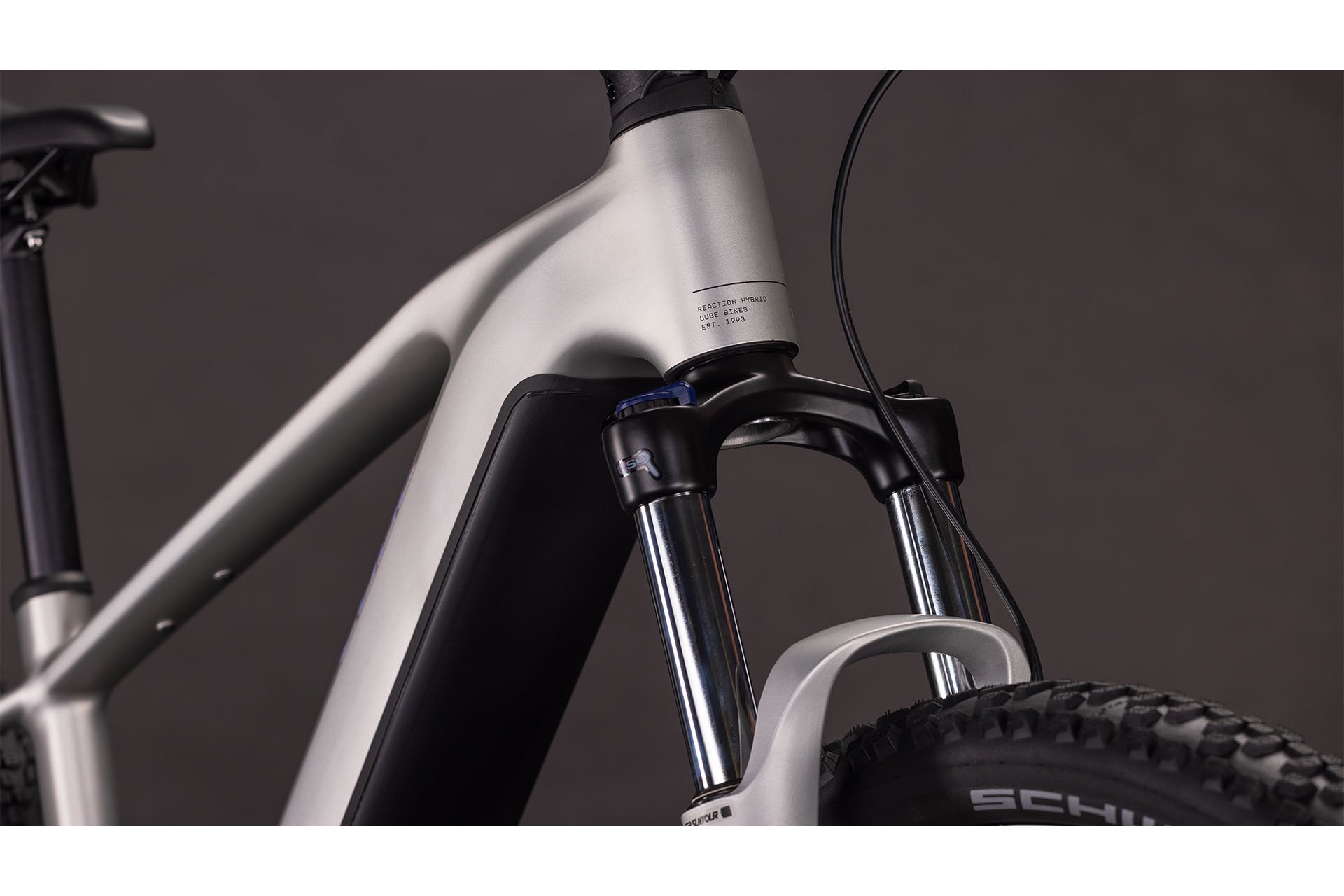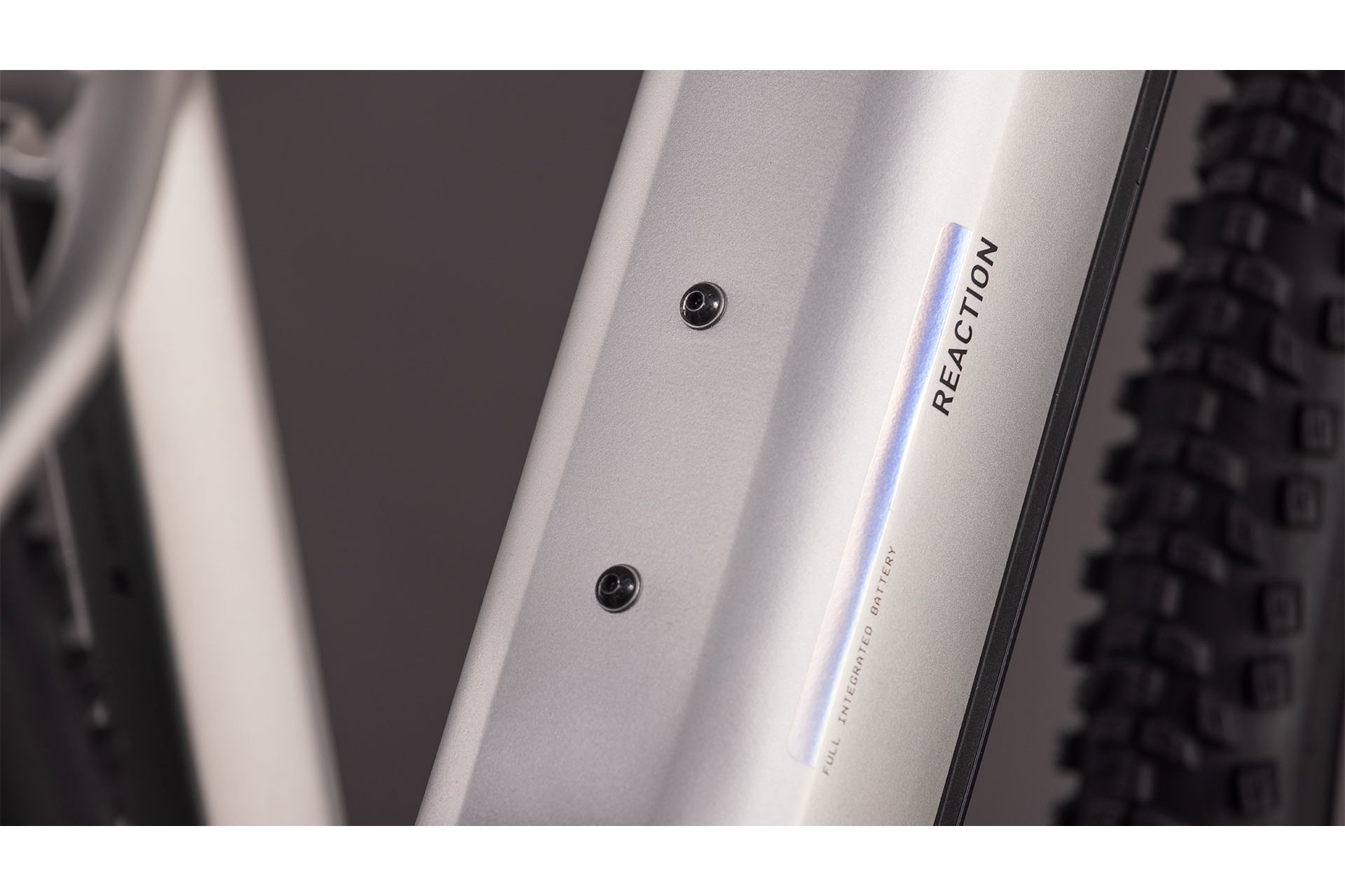 Cube verwendet für das Reaction Hybrid ONE 800 einen Aluminiumrahmen, der für eine robuste und langlebige Bauweise sorgt. Die Integration des Bosch PowerTube Akkus in den Rahmen ist sauber umgesetzt. Die verbauten Komponenten, wie Shimano Schaltwerk und Bosch Antrieb, sind bewährte Standards im E-Mountainbike-Bereich, die auf Haltbarkeit und Funktionalität ausgelegt sind.