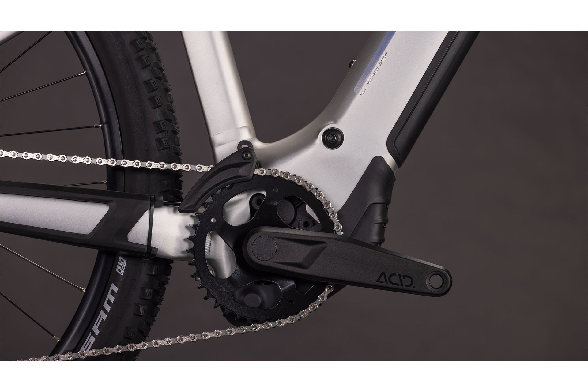 Das Cube Reaction Hybrid ONE 800 ist mit einer 10-Gang-Kettenschaltung von Shimano ausgestattet. Das Schaltwerk Shimano Cues RD-U6000-GS und die Rapidfire Plus Schalthebel ermöglichen präzise und schnelle Gangwechsel. Die Kette vom Typ KMC eGlide ist speziell für E-Bikes konzipiert und bietet erhöhte Haltbarkeit. Die Kurbelgarnitur ACID MTB Hybrid Pro mit 38 Zähnen unterstützt eine ausgewogene Kraftübertragung. Der Bosch Performance Line CX Smart Gen5 Mittelmotor mit 250 Watt bietet eine elektrische Unterstützung, die vor allem beim Bergauffahren und längeren Touren entlastet. Der Bosch PowerTube Akku mit 800 Wh Kapazität ermöglicht eine längere Reichweite und ist in den Rahmen integriert. Das Bosch Purion 200 Display zeigt Fahrdaten übersichtlich an und ist in das Cockpit integriert.