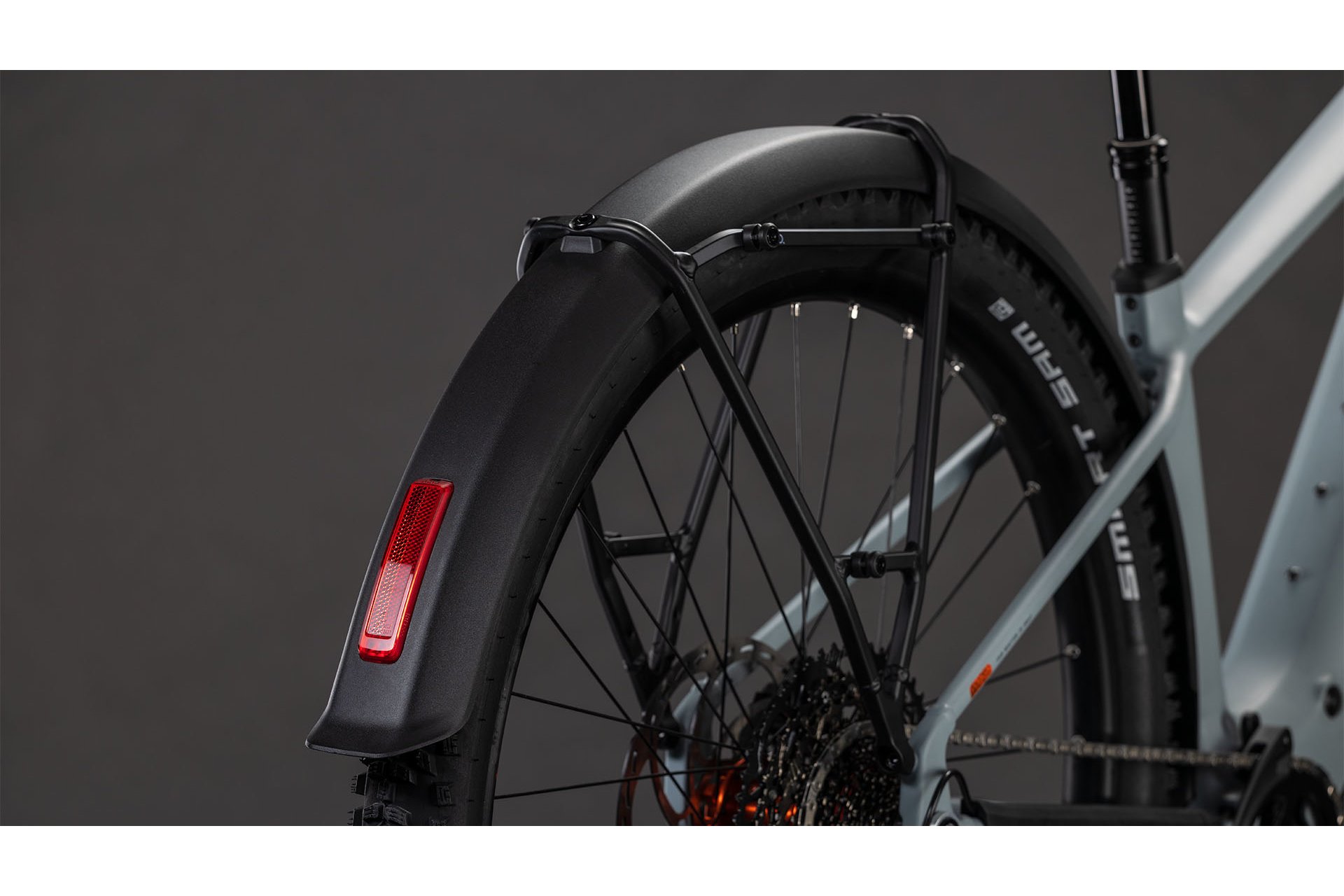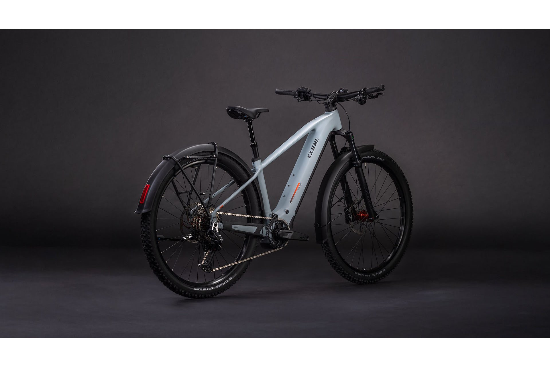 Das Cube Reaction Hybrid Race 800 FE verfügt über eine Federgabel mit 120 mm Federweg, die Unebenheiten der Fahrbahn effektiv abfedert und so den Fahrkomfort erhöht. Die Sattelstütze ist eine CUBE Dropper Post mit Lenkerfernbedienung, was eine flexible Sitzposition während der Fahrt ermöglicht und somit den Fahrkomfort und die Kontrolle verbessert. Der Sattel vom Typ ACID Sequence 160 unterstützt eine sportliche Sitzhaltung. Der Lenker und Vorbau sind ebenfalls von Cube gefertigt und auf eine sportliche Fahrweise ausgerichtet.