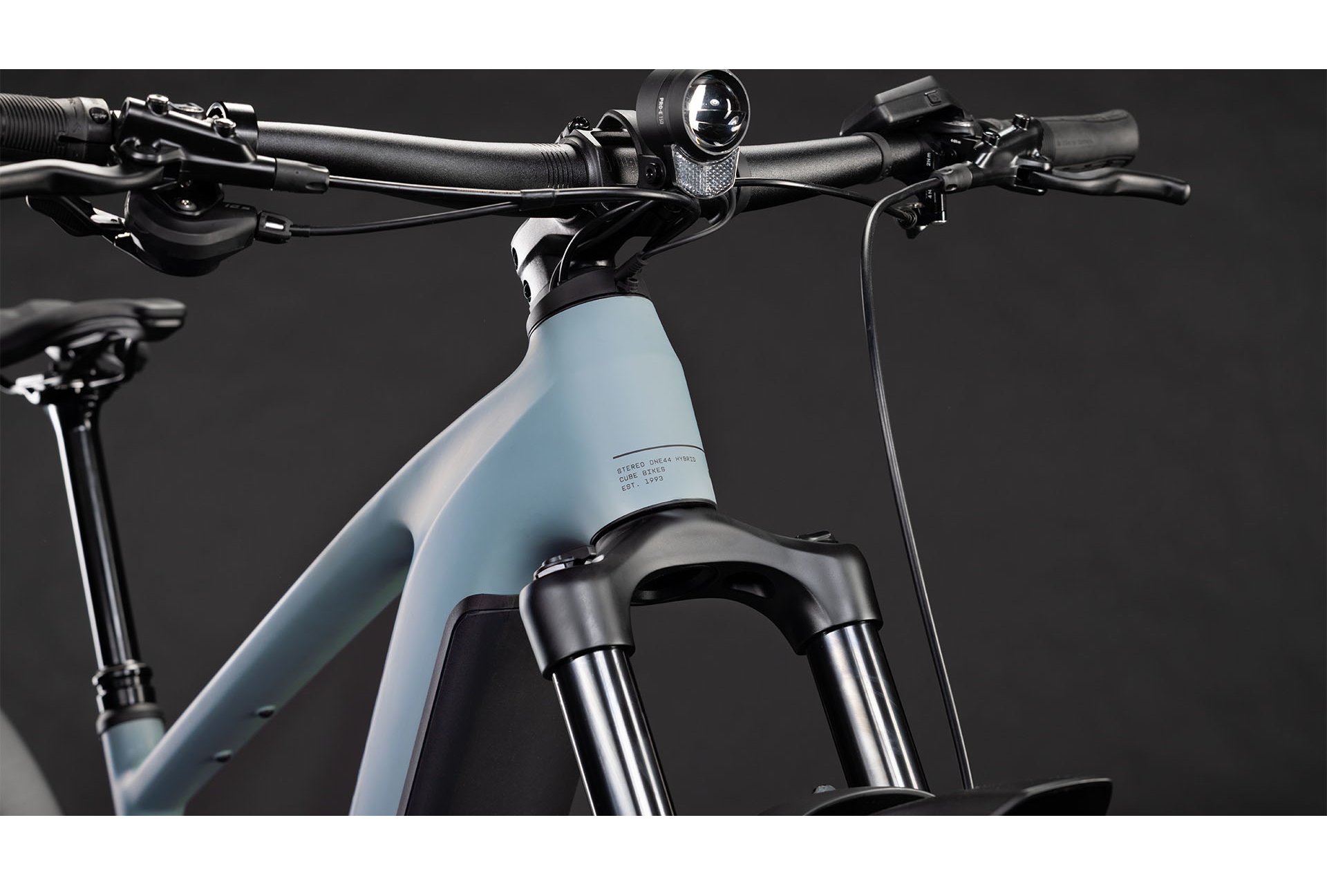 Das Cube Stereo Hybrid ONE44 Pro 800 FE bietet durch die vollgefederte Bauweise mit 140 mm Federweg, die Dropper-Sattelstütze mit Fernbedienung und den ergonomischen CUBE Rise Trail Bar Lenker eine komfortable und kontrollierte Fahrposition. Der Sattel ACID Venec EMTB Plus 145 ist auf E-Mountainbike-Fahrten ausgelegt und unterstützt längere Einsätze. Die interne Kabelführung trägt zur Robustheit und einem aufgeräumten Erscheinungsbild bei.